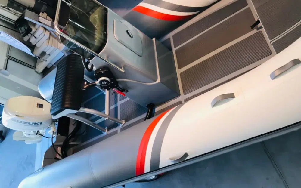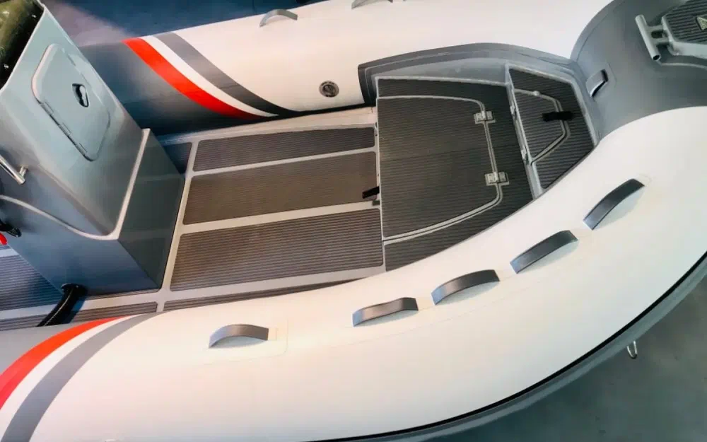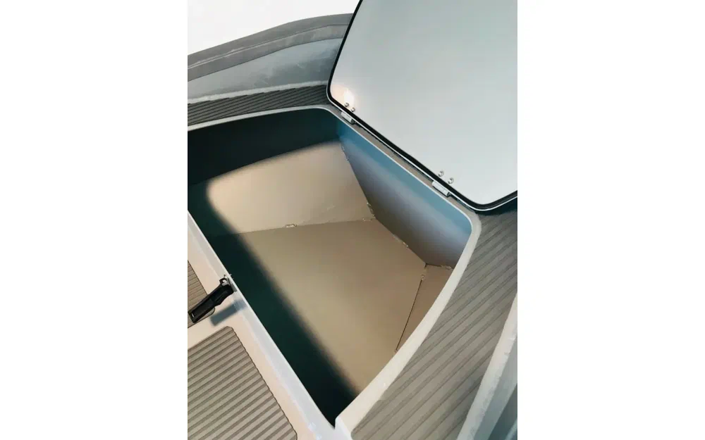 Ce modèle est équipé d’un double plancher en aluminium. Vous bénéficiez ainsi d’un pont plat recouvert d’un pads EVA anti-dérapant, pour un maximum de confort. IL est également équipé d’un double coffre avant pour le stockage de votre mouillage et nourrice.