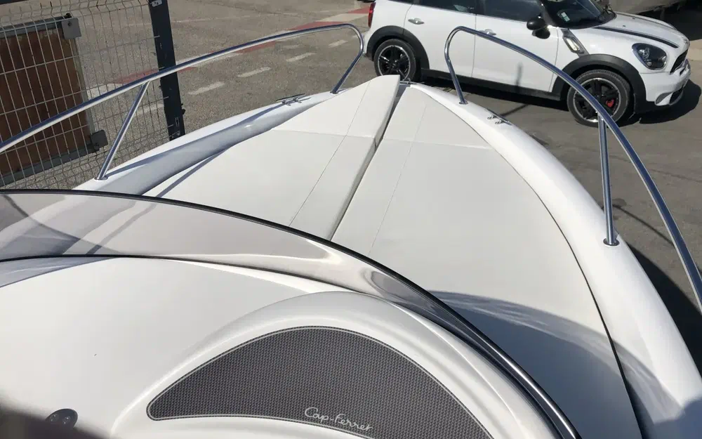 Le Cap-Ferret 522 SUN DECK affiche son caractère dévolu aux plaisirs sur l’eau.De type Sun Deck, il offre un véritable bain de soleil sur l’avant, et une belle cabine avec un lit pour 2 personnes, et un petit évier.