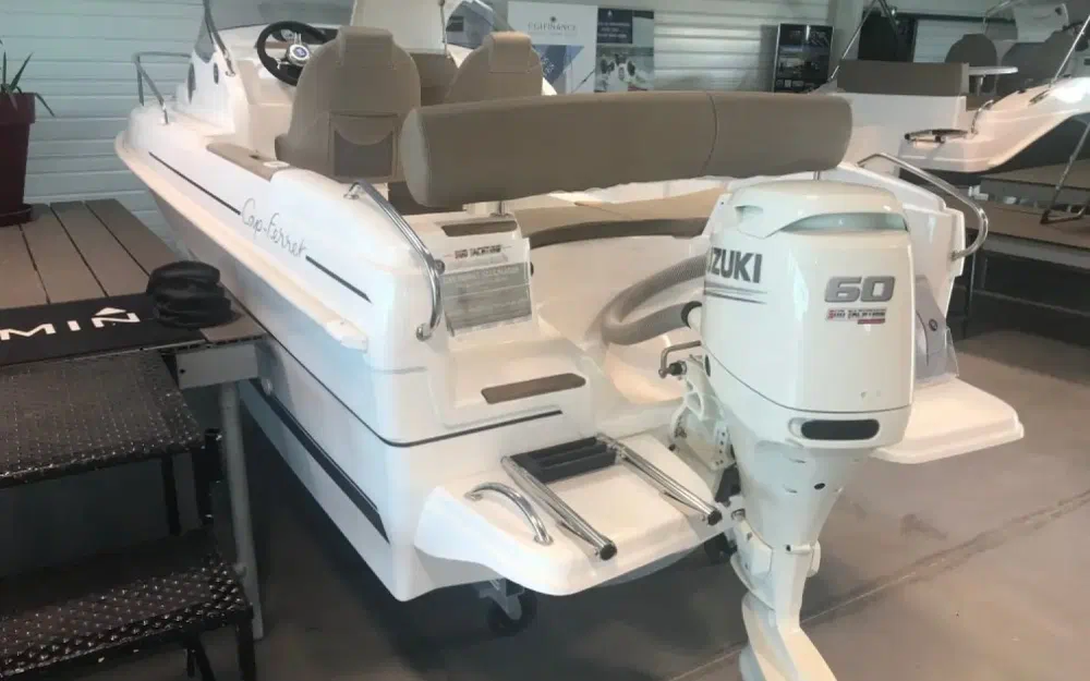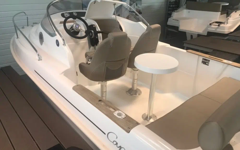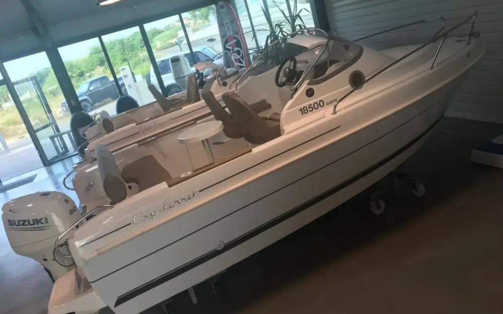 Equipé d’un moteur hors-bord de 50 à 75 cv, le Cap-Ferret 522 CRUISER est un vrai cabin-cruiser avec deux couchettes, de nombreux rangements et un emplacement pour le wc chimique.