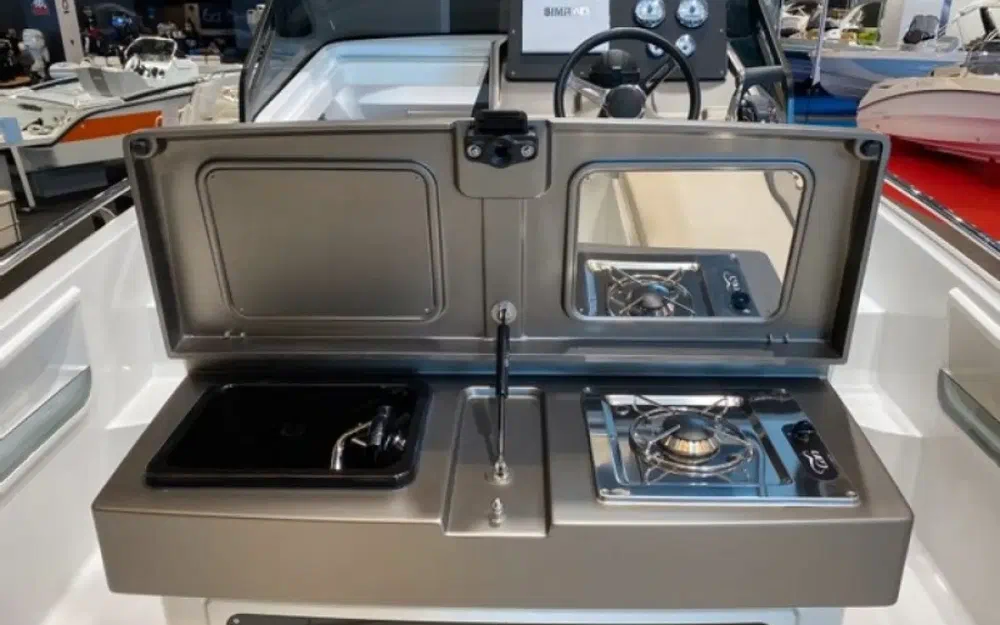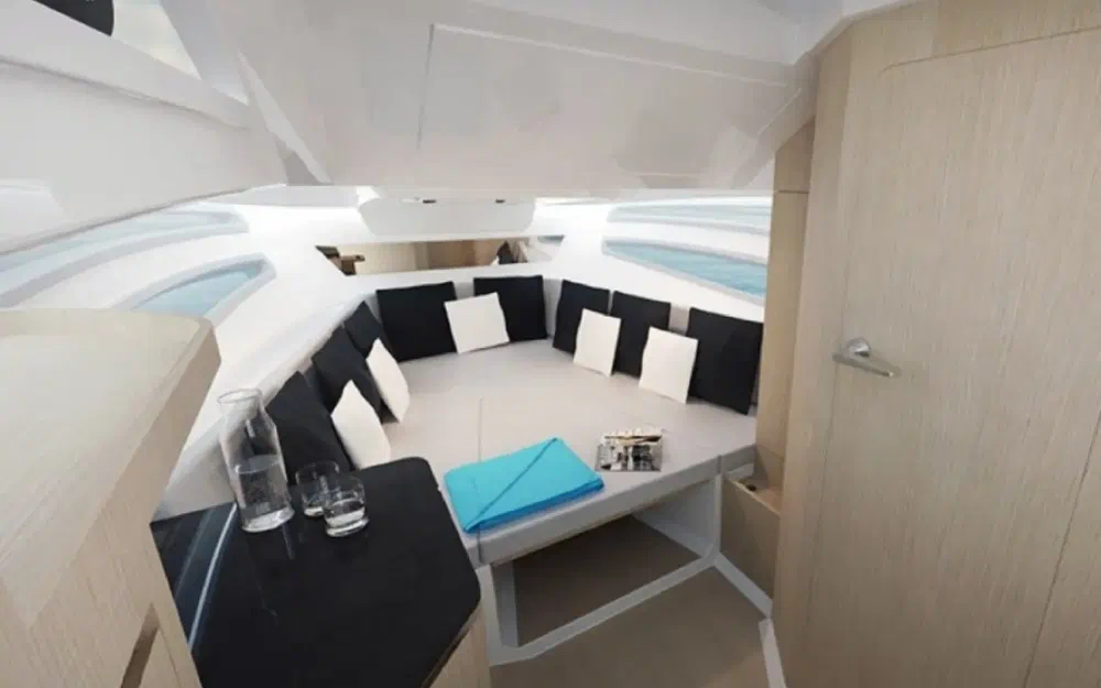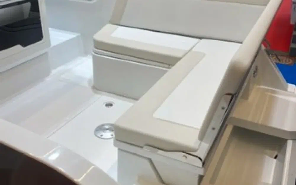 Coque Blanche, Réfrigérateur de cabine, Chargeur de batterie et prise de quai, Leds de Cockpit, Mat de ski, Banquette latérale rabatable Babord, Bimini avec 4 mats carbone, Assistance de direction