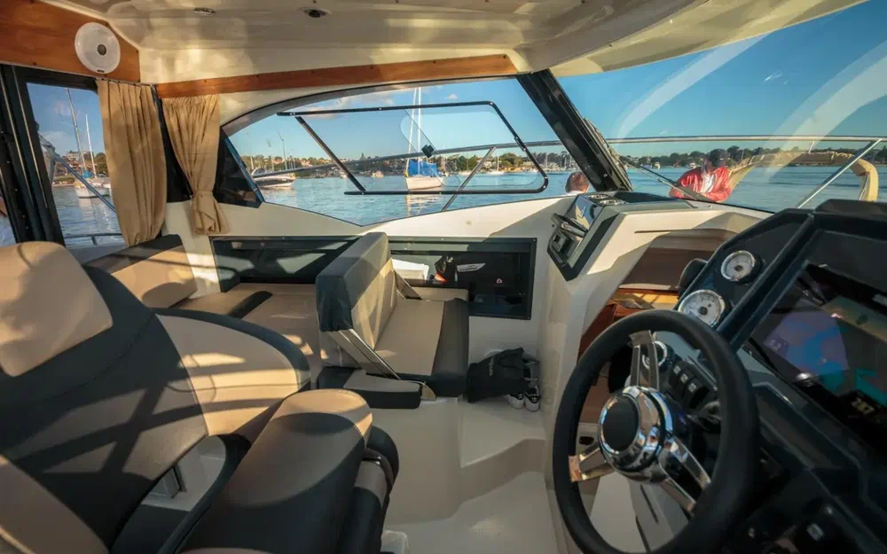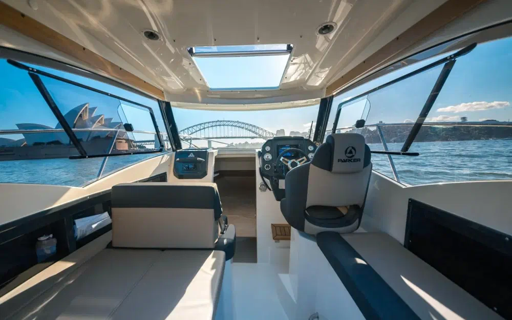Le cockpit arrière permet à tous les passagers de profiter de la navigation en plaine air. Comme à son habitude, un second poste de pilotage est disponible en option. Le Parker 750 Cabin Cruiser sera suivi très prochainement par une déclinaison de type Day Cruiser, avec un cockpit complètement ouvert pour un look encore plus sportif.