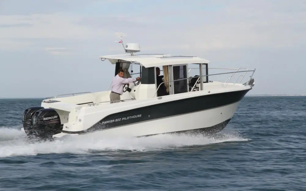 Conçus sur le meme coque que le le Parker 800 Weekend,le Parker 800 Pilothouse hérite de ces excellentes qualités de navigation. Cependant la coque a été modifié afin de recevoir une double motorisation qui conviendras au pecheur les plus aguerris.